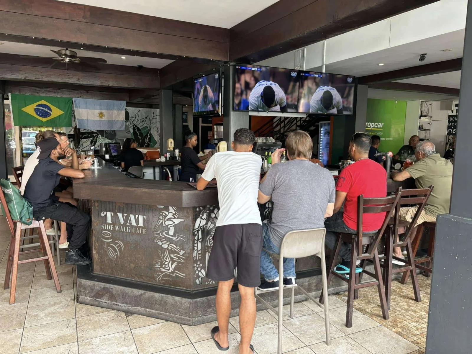 ’t Vat Sidewalk Café in Paramaribo is een bekende hotspot die zowel locals als toeristen aantrekt met zijn relaxte sfeer en centrale ligging aan de Kleine Waterstraat.