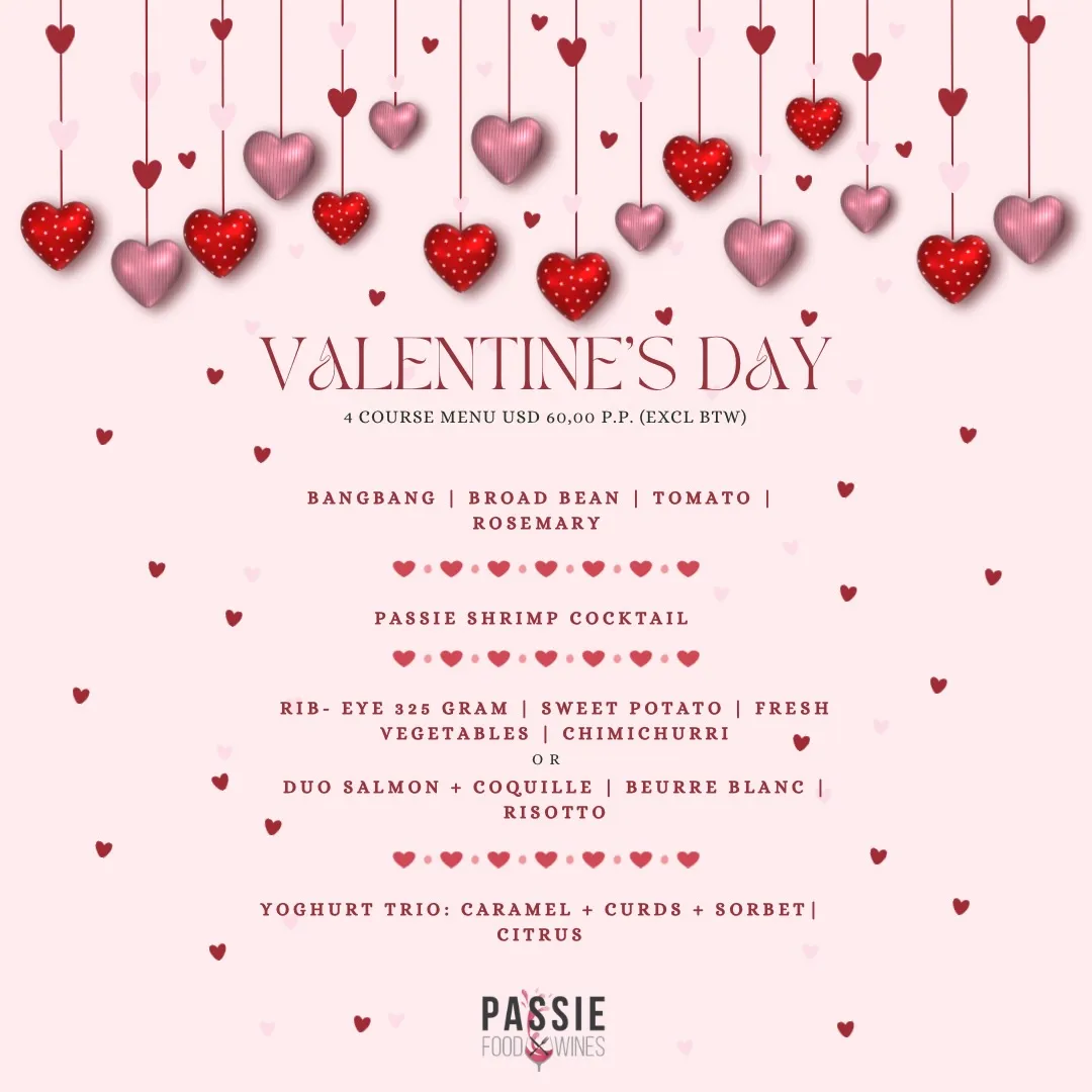 Geniet op Valentijnsdag van ons speciale 4-gangenmenu, samengesteld om uw zintuigen te verrassen en de juiste sfeer te creëren.